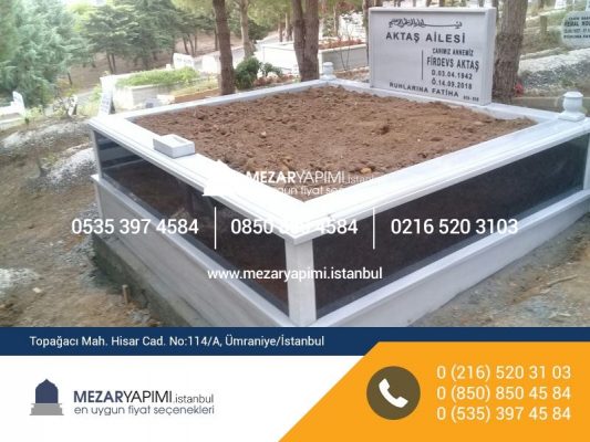 AKTAŞ Ailesinin sarıyer Kilyos mezarlığında bulunan Aile Kabristanlığı Yapımı için İki Kişilik Gövde Granit Sütunlu Mezar modelimizi tercih ettiler.