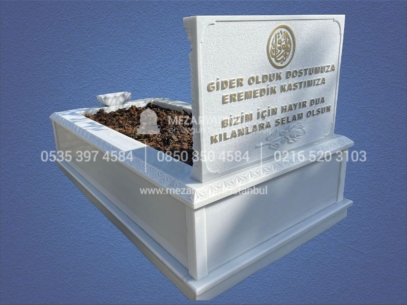 Bu özel mezar modelinde kullanılan CNC işleme teknolojisi sayesinde, baş taşı ve küpeşte üzerinde yer alan tüm motifler kusursuz simetri ve yüksek hassasiyetle işlenmiştir. El işçiliğine kıyasla çok daha net, estetik ve uzun ömürlü desenler sunar.