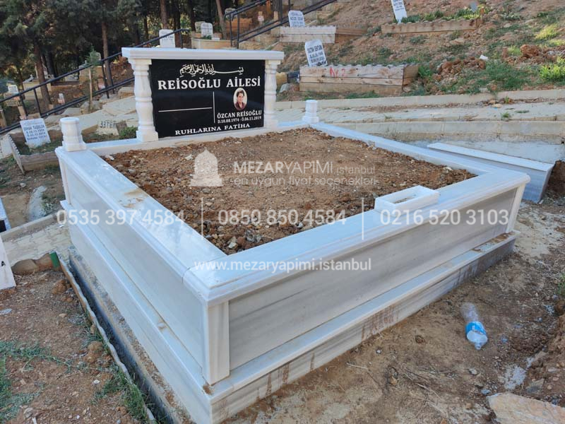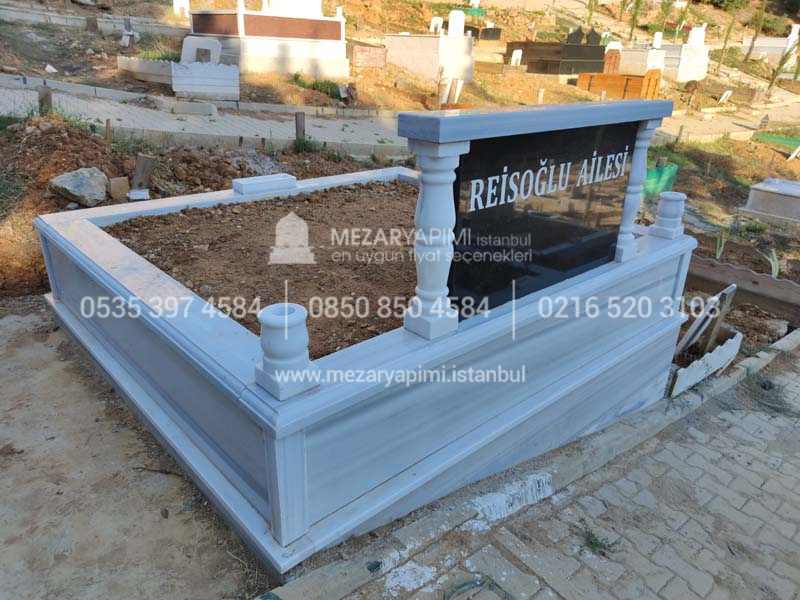 Baş taşı siyah granit diğer kısımları komple Marmara mermerinden imal edilmiştir.