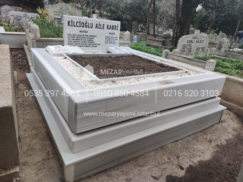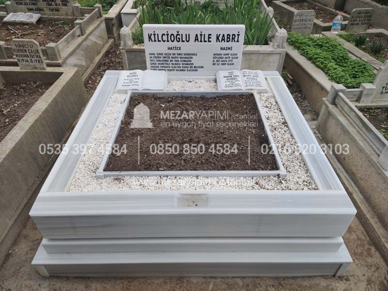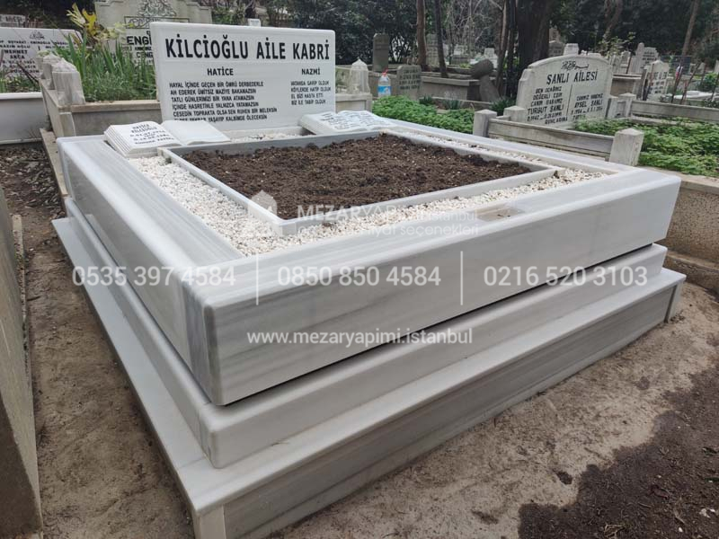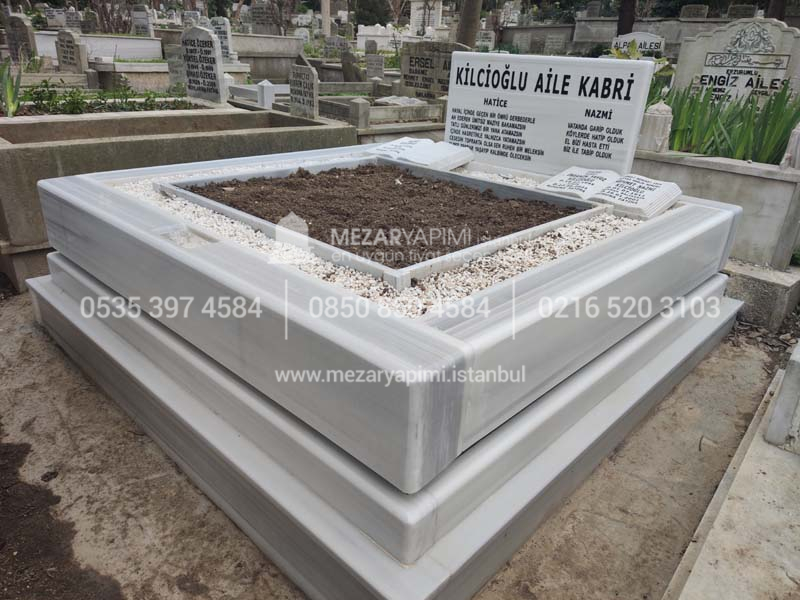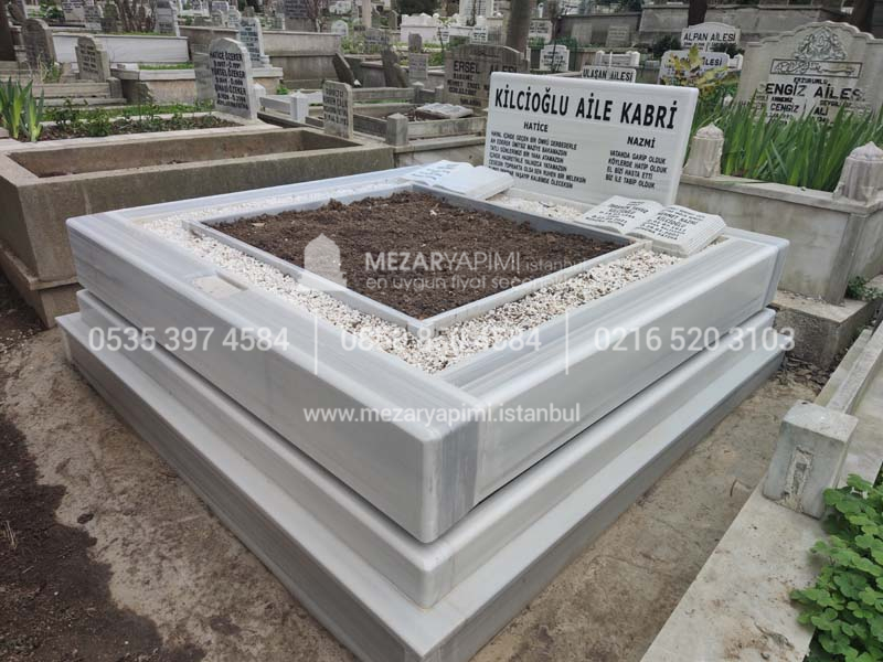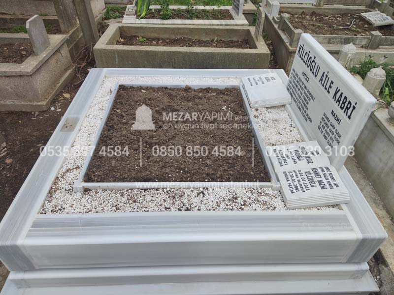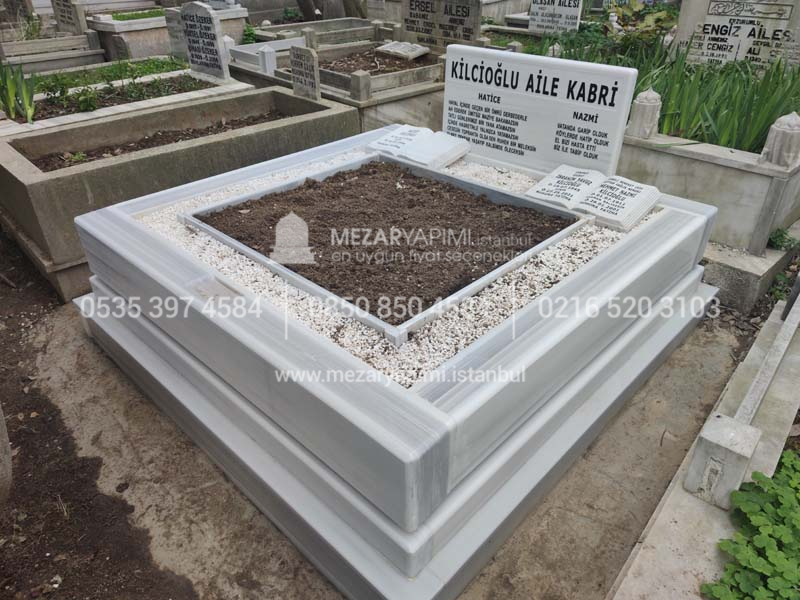 Çift Kişilik Beyaz Mermer Blok Mezar