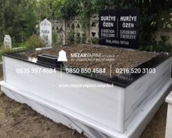 İki Kişilik Gövde Mermer Küpeşte,Baştaşı Granit Mezar Modelidir.
